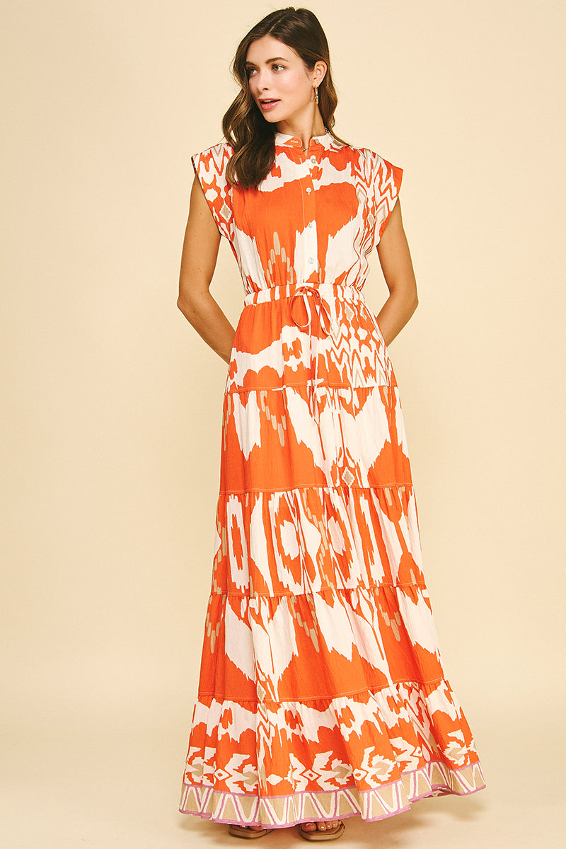Geometric Pattern Tiered Maxi Dress