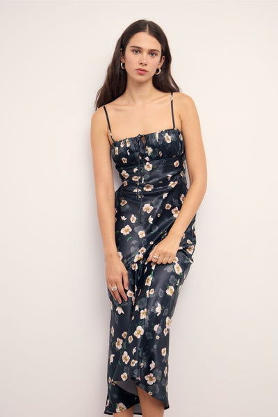 Black Embroidered Flower Square Neck Puff Sleeve Maxi Dress