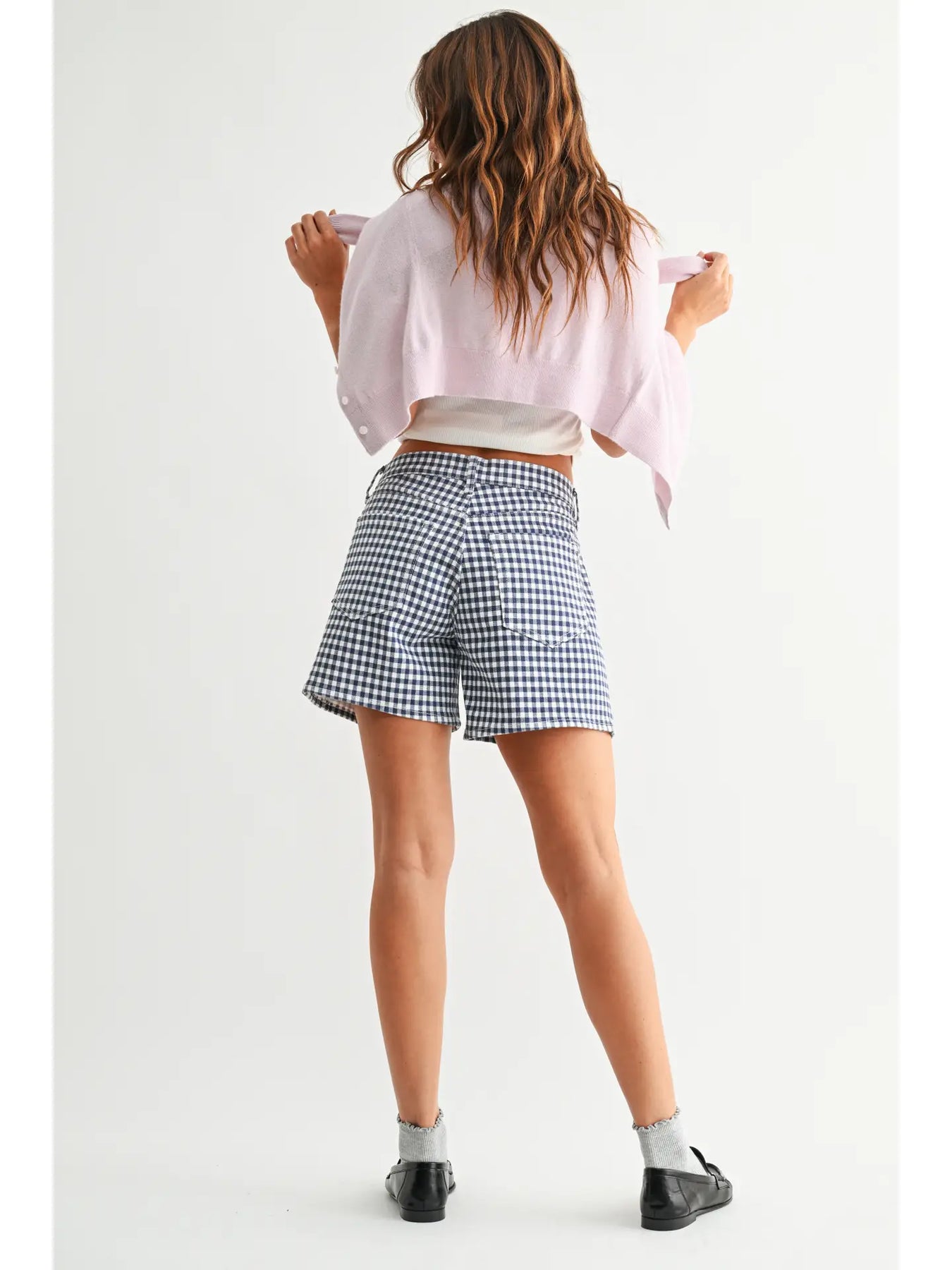 10.5'' RISE, 5.5'' INSEAM Medium Denim - Navy Gingham