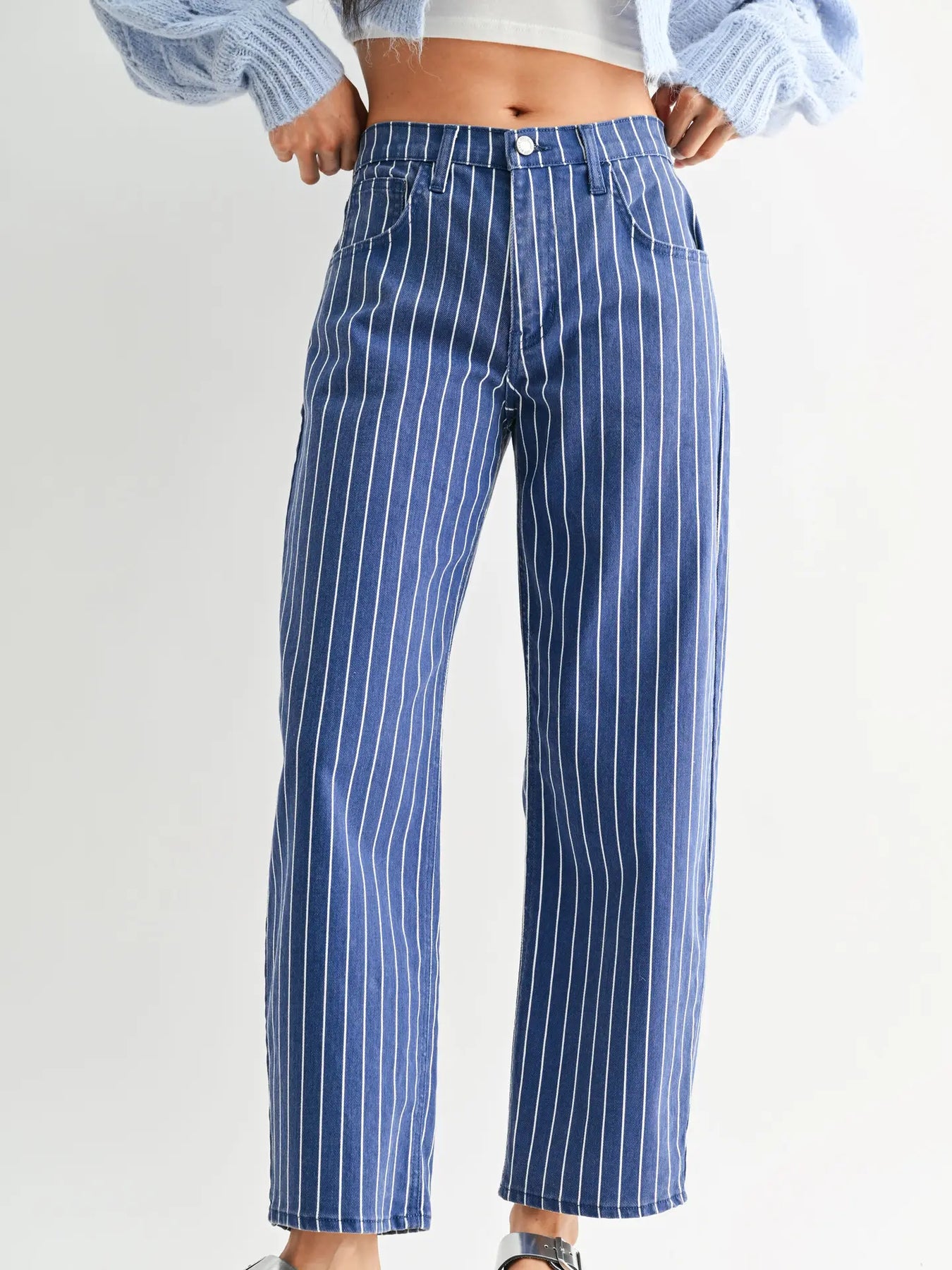 Nothing Fancy Stripe Barrel Jean