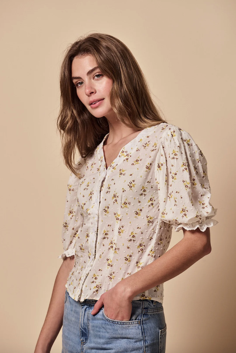 Slightly cropped for the perfect untuck and with a v neck, the Callie is in our super fresh white eyelet.
